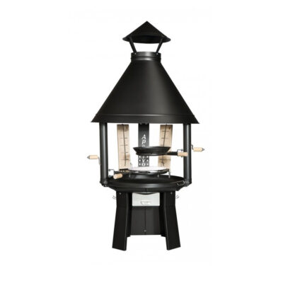 Робоча висота 60 см. У стандартний комплект входить низька стійка, димовий купол і навіс від дощу, дві поворотні регульовані по висоті підставки з підйомним механізмом, решітка для барбекю 38 см, 2 дошки для приготування риби на вогні, кочерга для вугілля.