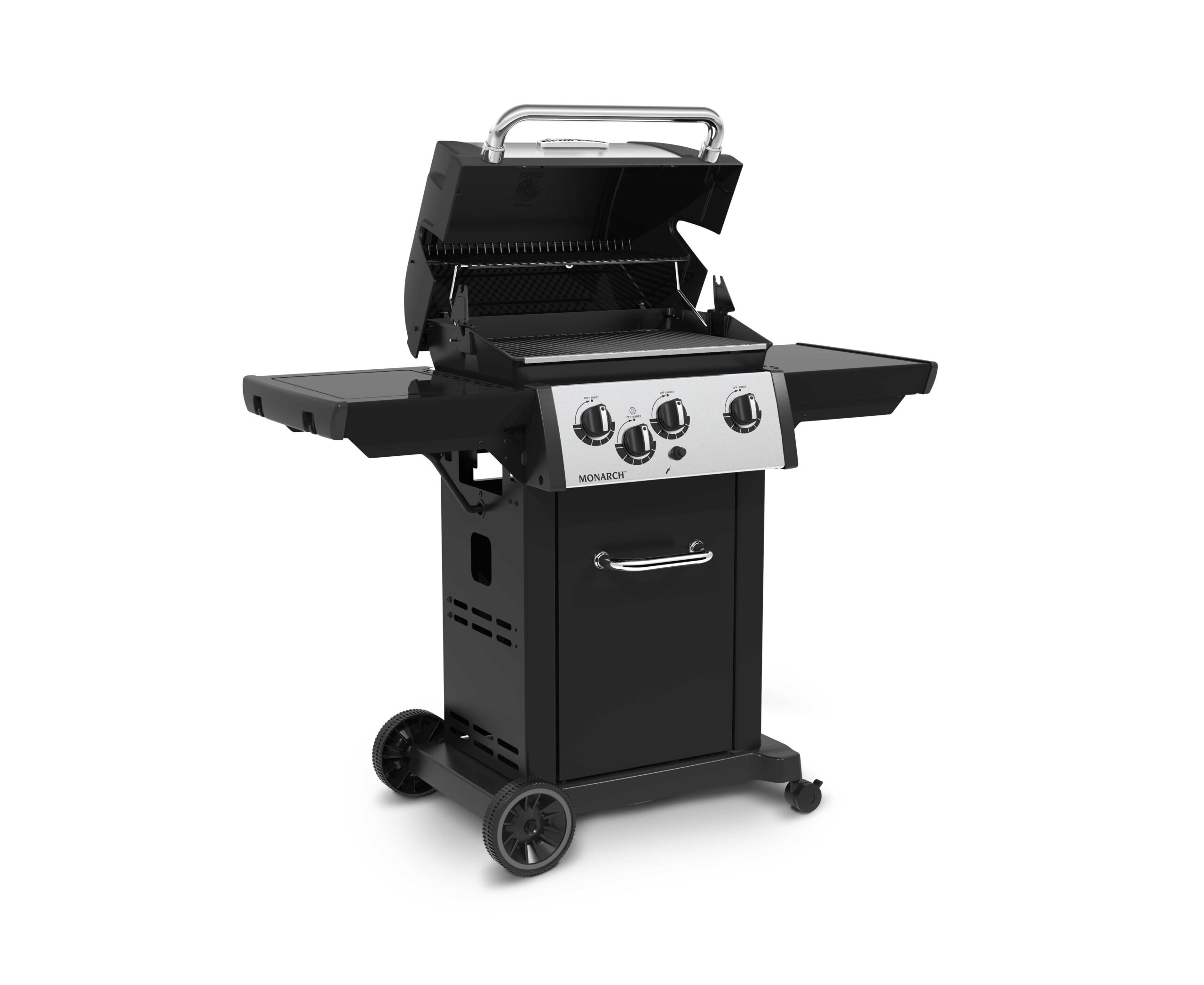 Гриль Broil King Monarch 340 оснащений однією камерою на три пальника, що розрахована на порцію для 8-10 людей.Також гриль включає у себе дві двосторонні масивні чавунні решітки, закриту шафу для балона, інструменти та аксесуари. Завдяки бічній конфорці у грилі , Ви можете приготувати соус, під час копчення великого шматка м’яса, або ж ребер. На гриль надається гарантія 24 місяці.