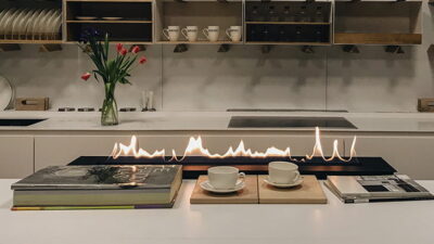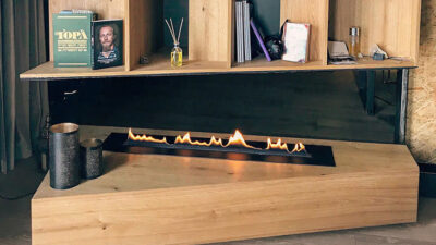 Базовий смарт-камін Neverdark Automatic для вашої оселі. Камін який можливо встановити у квартирі. Це автоматичні каміни Neverdark зі справжнім полум‘ям, що не потребують димаря. Каміни побудовані на технології горіння парів біонеталону. Без запаху, зайвих рухів Ви маєте справжній безпечний камін у своїй квартирі чи будинку. Камін має нульові викиди. Для вбудовування в ніші із нежаростійких матеріалів додатково використовується FIREBOX.