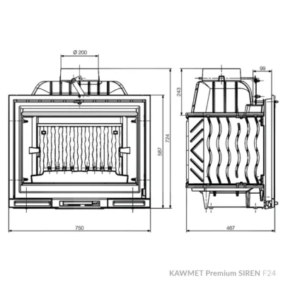 Дров’яна камінна топка, виготовлена з чавуну класу EN-GJL-200.