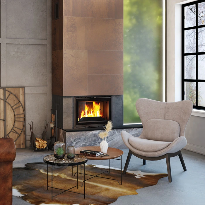 У цієї топки гарний дизайн, хромована обробка і трафаретне скло, а сучасна конструкція складається з:
