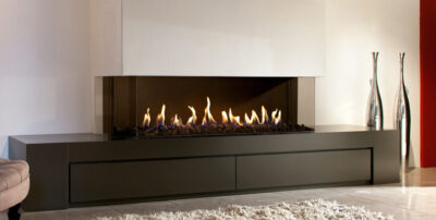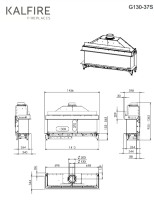 Газовий камін Kalfire G130 / 37S – це великий камін з тристороннім склом, ширина фронтального 130 см, ширина бічних 26,8 см, а висота 37 см. Вогонь в газовому каміні Kalfire G130 / 37S виглядає реалістично і не відрізняється від каміна на дровах.