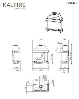 Kalfire G70 / 44S – це камін з тристороннім склом, ширина фронтального 70 см, ширина бічних 26,4 см, а висота 44 см. Вогонь в газовому каміні Kalfire G70 / 44S виглядає реалістично і не відрізняється від каміна на дровах.