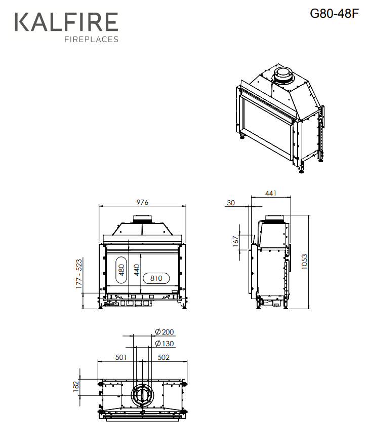 Kalfire G80 / 48F це камін з фронтальним склом, ширина якого 81 см, а висота 48 см. Вогонь в газовому каміні Kalfire G80 / 48F виглядає реалістично і не відрізняється від каміна на дровах.