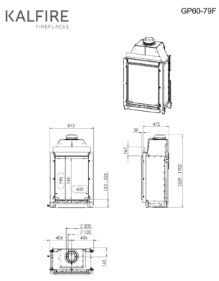 Газовий камін Kalfire GP 60 / 79F це камін з фронтальним склом, ширина якого 60 см, а висота 79 см. Вогонь в газовому каміні Kalfire GP 60 / 79F виглядає реалістично і не відрізняється від каміна на дровах.