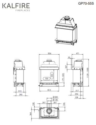 Газовий камін Kalfire GP 70 / 55S – це камін з тристороннім склом, ширина фронтального 70 см, ширина бічних 31,7 см, висота 55 см. Вогонь в газовому каміні Kalfire GP 70 / 55S виглядає реалістично і не відрізняється від каміна на дровах.