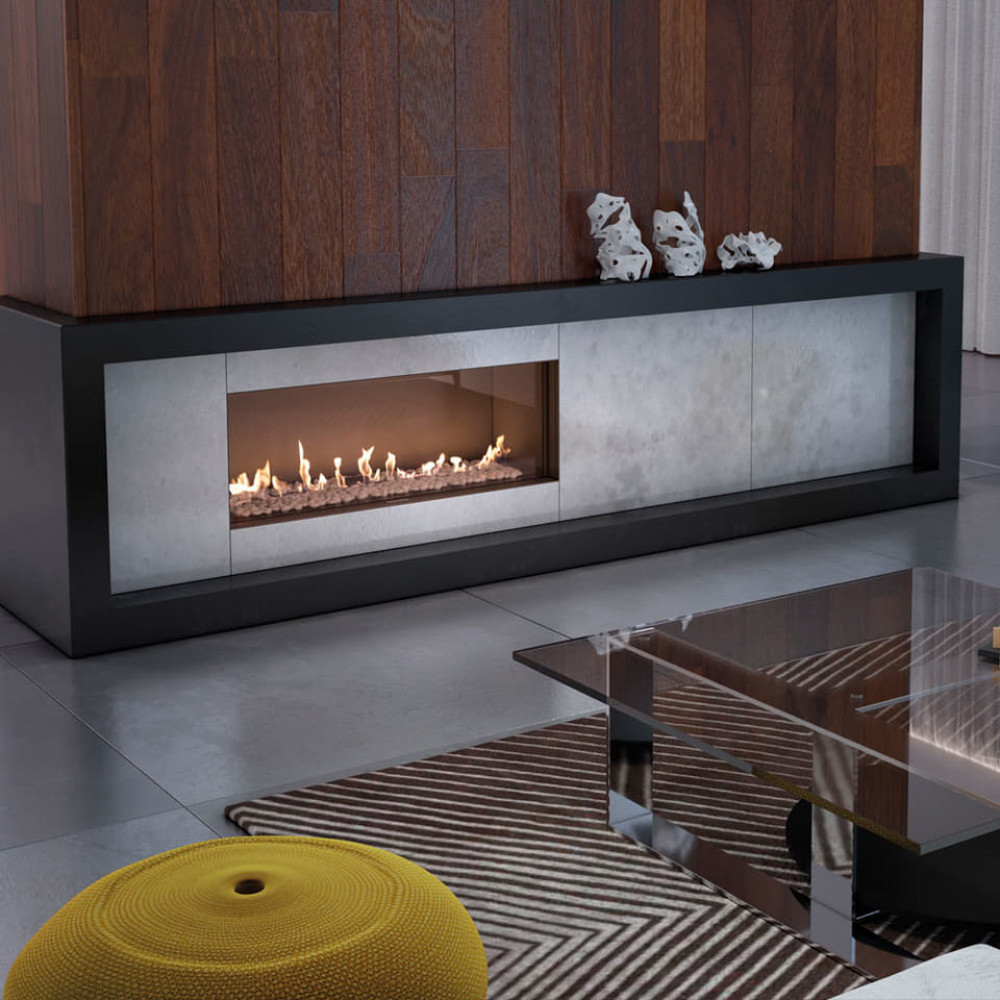Безперешкодний огляд вогню завдяки невидимій рамці фасаду та мінімальній кількості видимих сталевих елементів.