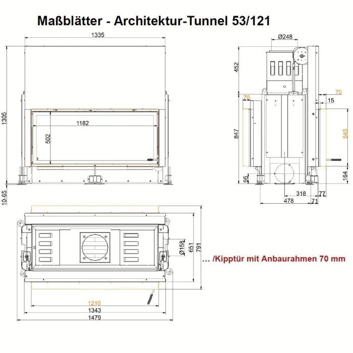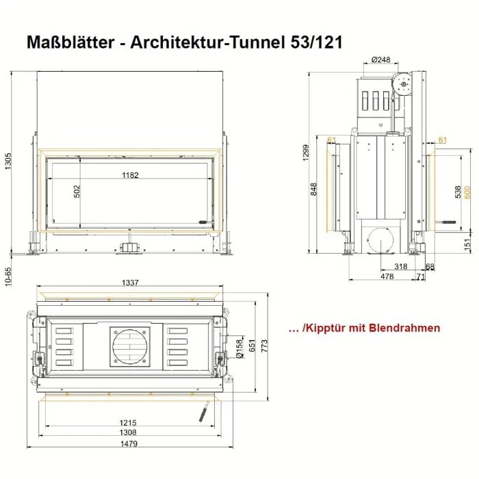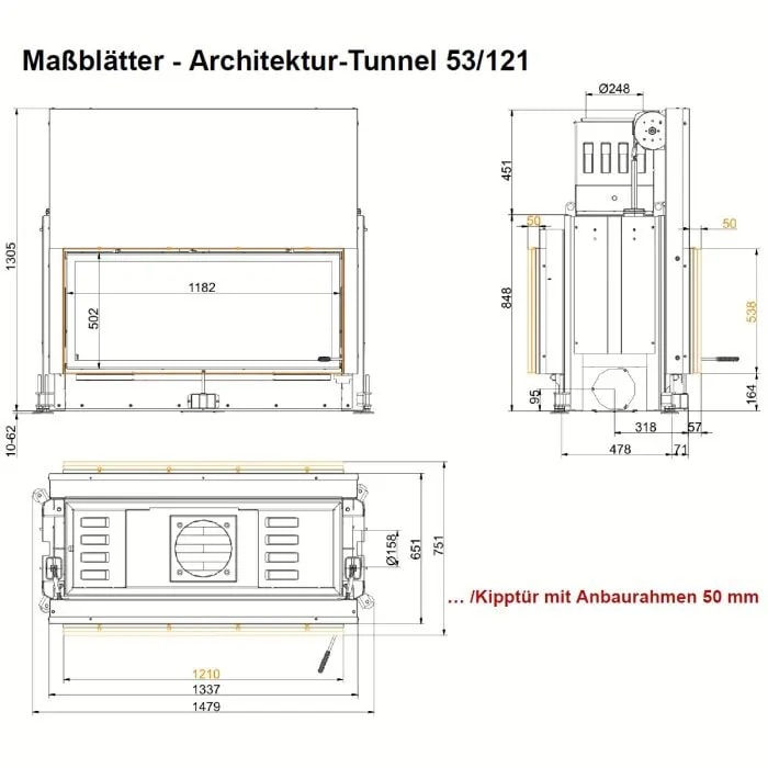 Brunner Architektur-kamin tunnel 53/121 камін тунельний з розсувними і відкидними дверцятами
