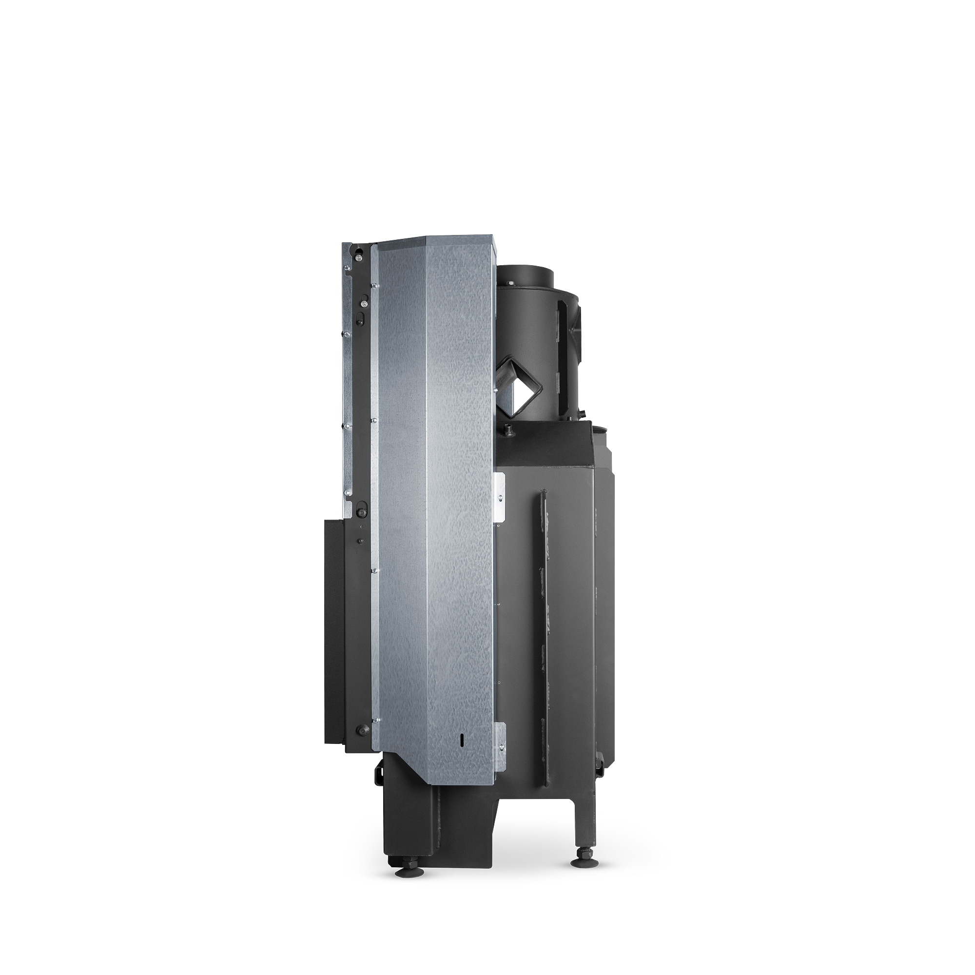 Корпус топки виконаний з вогнетривкої сталі, а внутрішня обробка камери згоряння з шамоту. Шамотні плити для внутрішньої обробки топки можна вибрати з двох кольорів білого і чорного.