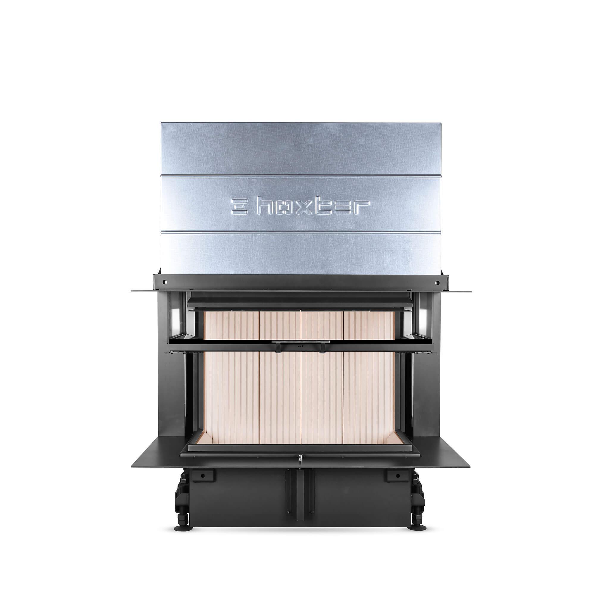 Цю топку можна використовувати для опалення будинку із застосуванням повітряної розводки тепла по кімнатах. Особлива конструкція димосборніка дозволяє знімати більше тепла з димових газів. Камін Hoxter має беззольниковую систему, що є ознакою топок орієнтованих на опалення.