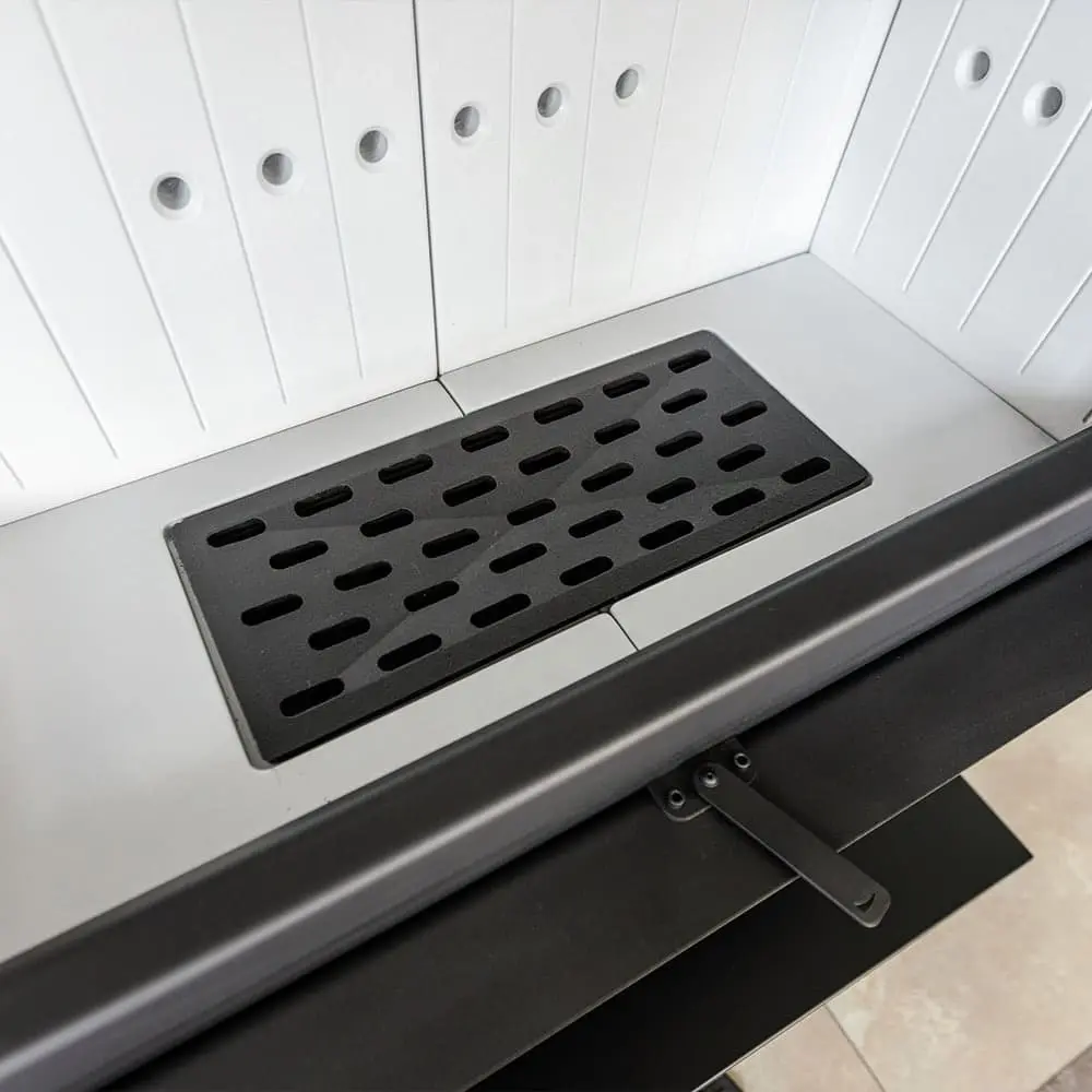 Дбаючи про вашу зручність, FLOKI має профільоване дно, яке може вмістити більше деревини, а знімна решітка та зольник полегшують утримання в чистоті. Система чистого скла запобігає накопиченню кіптяви, зберігаючи скло чистим і забезпечуючи чіткий огляд вогню