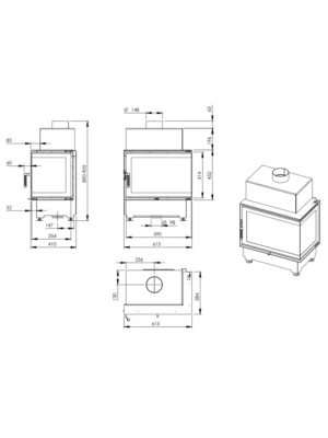 - Можливість подачі повітря як і через зольний ящик, так і підвід з вулиці. Для правильного та ефективного функціонування камінної топки потрібна постійна подача повітря у камеру згорання. У комплекті сталевий перехідник діаметром 150 мм.