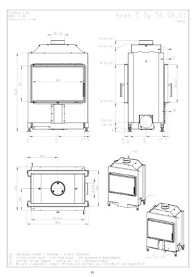 - Змінні ніжки 190 мм для регулювання висоти камінних топок