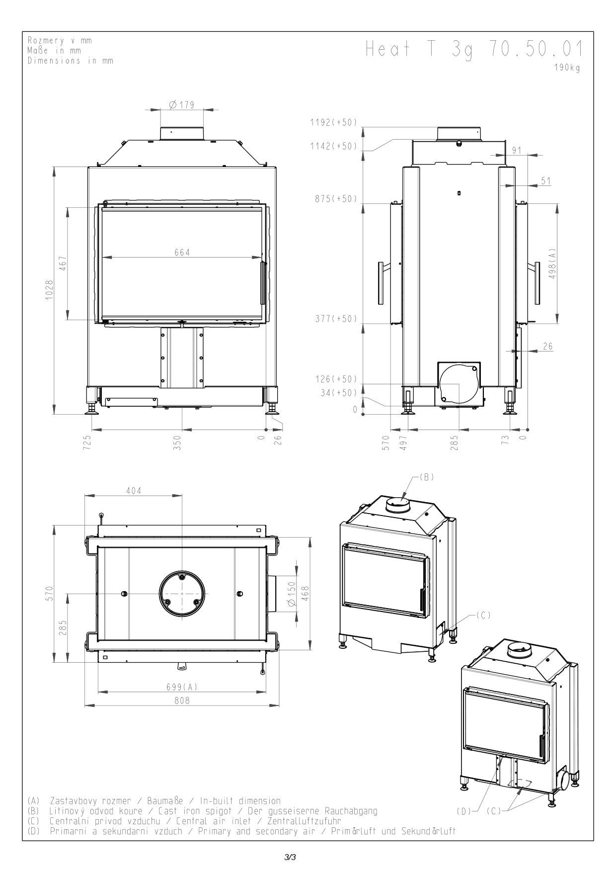 Сталева камінна тунельна топка Romotop HEAT 3g 70.50.01 – це конвекційна топка з прямим склом від чеського виробника Romotop, корпус якої виготовлений з низьковуглицевої сталі товщиною 3 мм, а камера згорання футерована шамотом. Саме завдяки такому матеріалу як шамот камінна топка значно краще акумулює та віддає накопичене тепло.