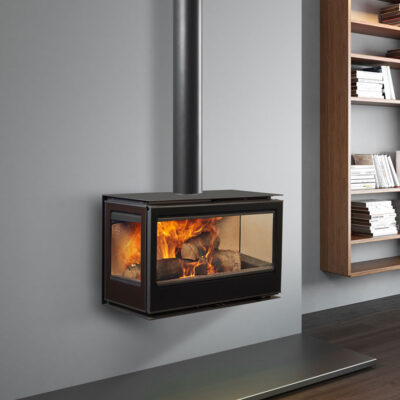 - У каміні Rocal герметична камера горіння з трьохзонним розподілом подачі повітря, що забезпечує чисте скло та високий ККД за рахунок третинного допалу газів.