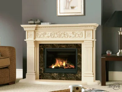 Купити мармуровий портал для каміну Браво Прага у Львові ви можете у салоні-магазині камінів «Kamin Home».