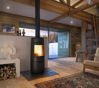 Піч Dovre BOLD 400 це сучасна, чавунна модель у норвежському стилі з боксом під дрова, герметичною камерою та боковим відкриванням дверки яка має панорамне скло для ще більшого огляду вогню. Піч виконана з високоякісного чавуну з додаванням спеціальних речовин які збільшують його міцність та стійкість до температурних навантажень. Також ця модель має подачу повітря з вулиці та можливість заднього підключення до димоходу. Камера згоряння футерована вермикулітом який збільшує температуру цим самим забезпечуючи чисте скло та ще більш ефективне спалення дрів. Камінна піч Dovre BOLD 400 відома своїм скругленим зовнішнім виглядом та має сучасний стильний дизайн.