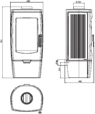 На дверцятах розміщений зручний регулятор для подачі повітря в зону горіння, для більш ефективного горіння дров, піч обладнана системою вторинного допалу.