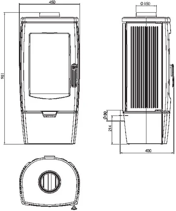 Все паливо, яке вигоріло, потрапляє через чавунні колосники у вмістимий попільник, звідки його можна швидко та зручно видалити, навіть під час горіння.
