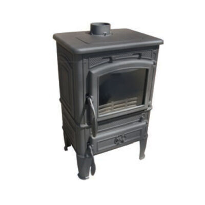 Класичний чорний колір облицювання красиво відтіняє різьблені елегантні ніжки печі, витончену ручку топки, заріфленние дверцята зольника і топки. Безпосередньо сама дверцята топки має закруглену догори форму у вигляді арки, тим самим відкриваючи красивий вид на гру полум’я.