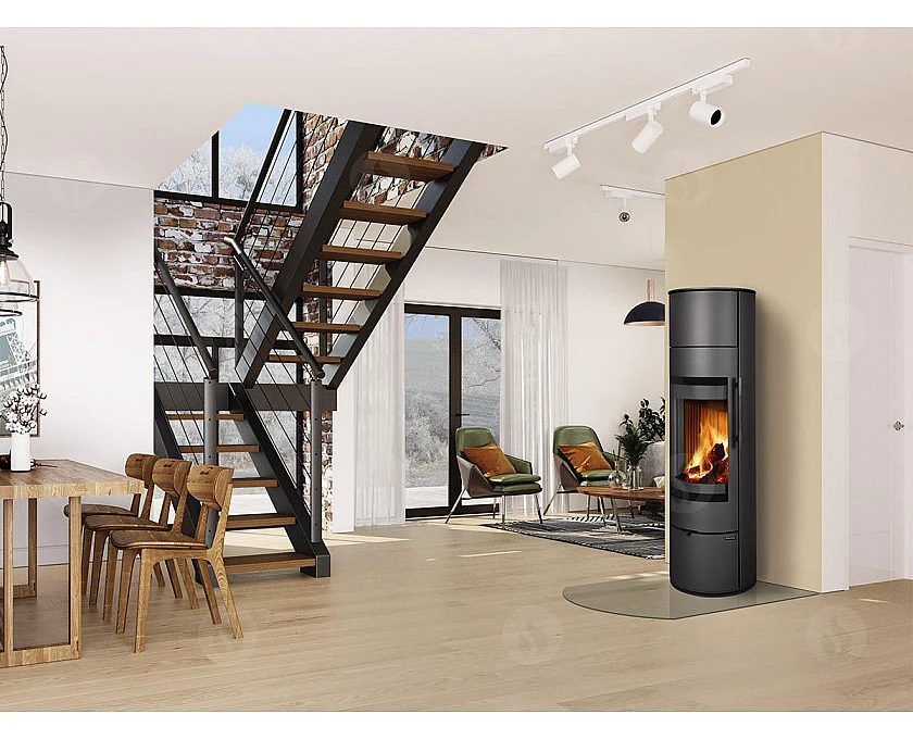 Елегантний, стрункий силует печі-каміна LUANCO N AKUM відмінно доповнить будь-який інтер’єр. Поворотну топку можна розвернути в будь-яку сторону приміщення і насолоджуватися грою полум’я без обмежень.