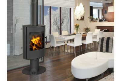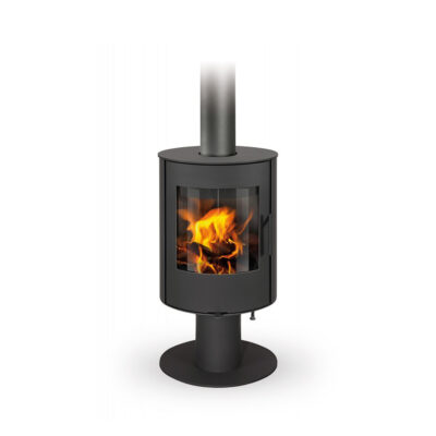 Стальна піч чеського виробника Romotop – EVORA T 03 на ніжці, з можливістю обертання камери горіння навколо своєї осі на 360 градусів. Піч має сучасний та стильний дизайн, тому чудово впишеться у будь-який інтер’єр Вашого будинку. Піч Romotop Evora T 03 доповнена жаростійким панорамним дизайнерським склом, яке повністю покриває дверцята, що робить її надзвичайно стильною та елегантною. Завдяки вторинній подачі повітря скло дверей омивається потоком повітря, що запобігає накопиченню кіптяви.