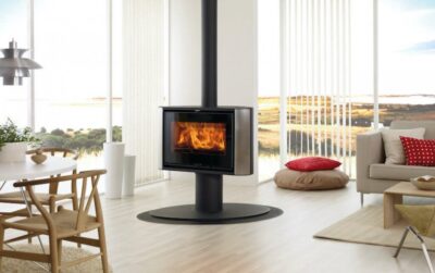 Двері в печі Scan 57 відкриваються в сторону, а ручка знаходиться знизу дверей поза зоною нагріву, таким чином вона завжди буде прохолодною. Особливістю печі є те, що вона може повертатися вліво і вправо на 45 градусів.