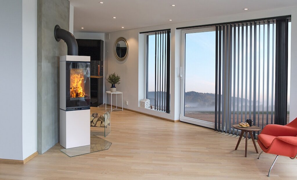 Scan 80 забезпечує прекрасний 180-кутовий огляд полум’я через призматичне роздільне скло. Завдяки своїй формі, піч Scan 80 ідеально підходить для кутової установки.