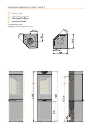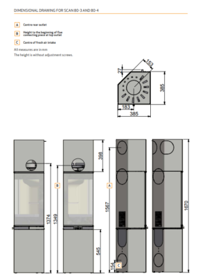 Оздоблення камери згоряння виконане з теплоємного матеріалу вермикуліт. У печах серії Scan 83 встановлена система “чисте скло”, система вторинного допалювання дров, завдяки якій досягається максимальний ККД.