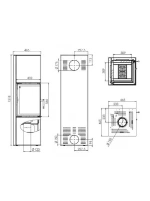 • Піч призначена для рекуперації (є подача свіжого повітря ззовні, діаметр труби 123 мм).